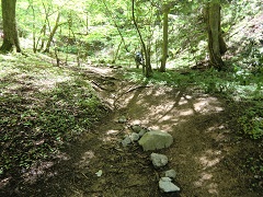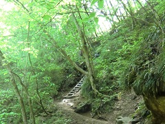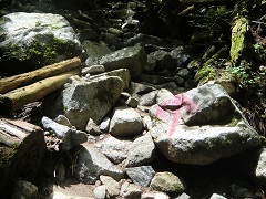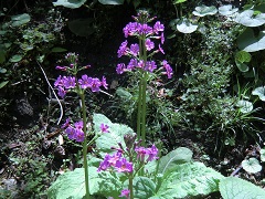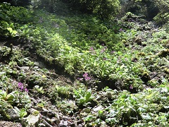| 千早本道登山口(まつまさ駐車場発)9:30~黒栂谷登山口(カトラ谷口)10:10~水場(休憩)10:40/50~クリンソウ自生地11:00/10~ヤマシャクヤク自生地11:25/35~青崩尾根