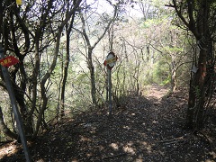 | 金熊寺バス停9:25〜登山口9:30〜森の家9:35〜林道終点9:40〜池9:50〜鉄塔10:00/10:05〜分岐10:40〜 山頂10:55/11:00〜マキ谷分岐11:45/55〜県道63号12:15〜東小学校12:20〜金熊寺バス停12:25 ※山頂気温15℃ ※鉄塔から尾根歩きで道は不明、採石場上部の道を歩く |